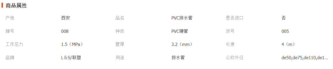 聯(lián)塑PVC排水管農(nóng)村改造用雨水塑料管道upvc排水管I型管DE110 3.2