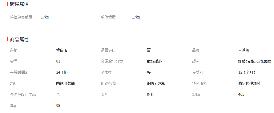 三峽牌油漆紅黃黑白灰醇酸磁漆17㎏3kg亮光漆防銹漆機(jī)械漆金屬漆